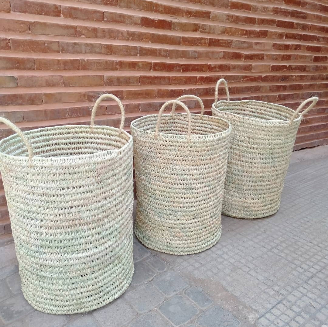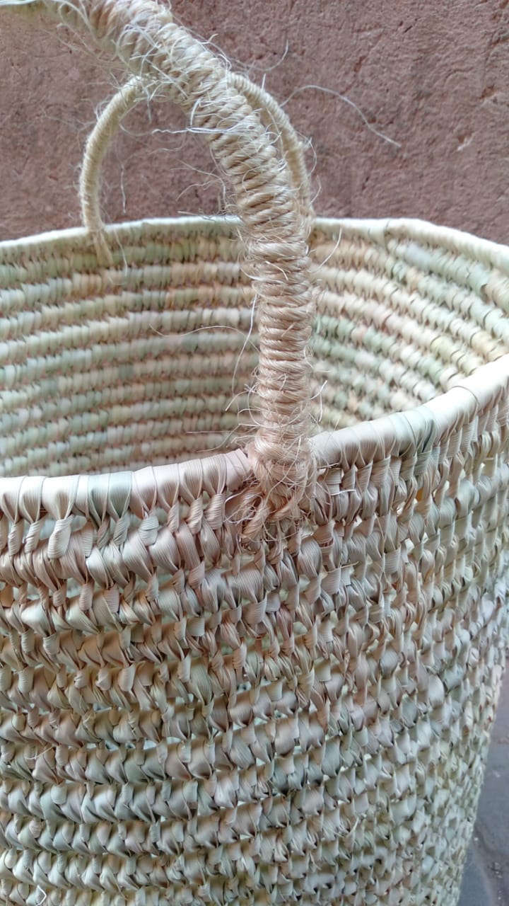 Grand panier en feuilles de palmier, idéal pour le linge, ranger vos plaids ou même les jeux des enfants.- Dimensions : 60 x 40 cm