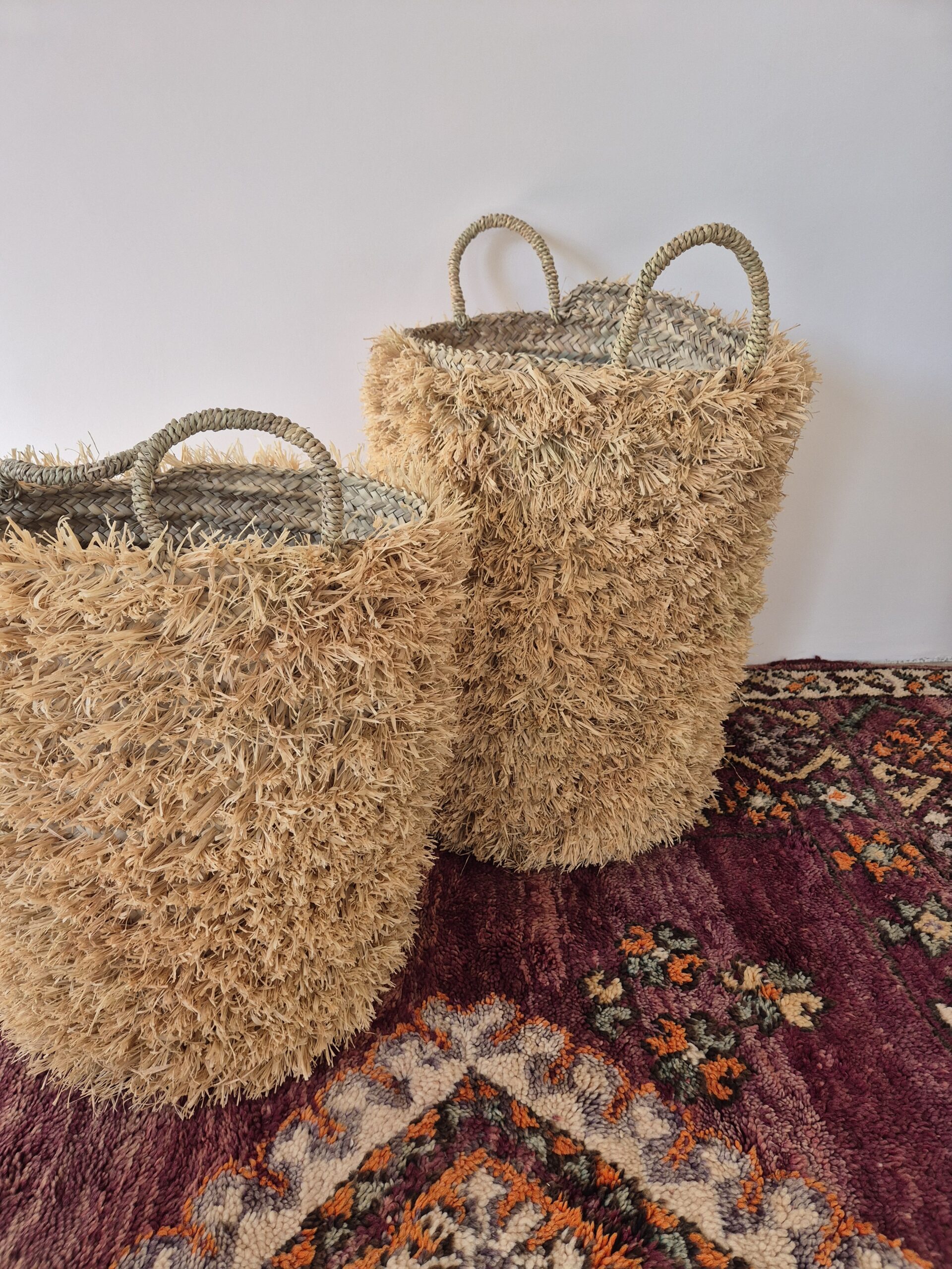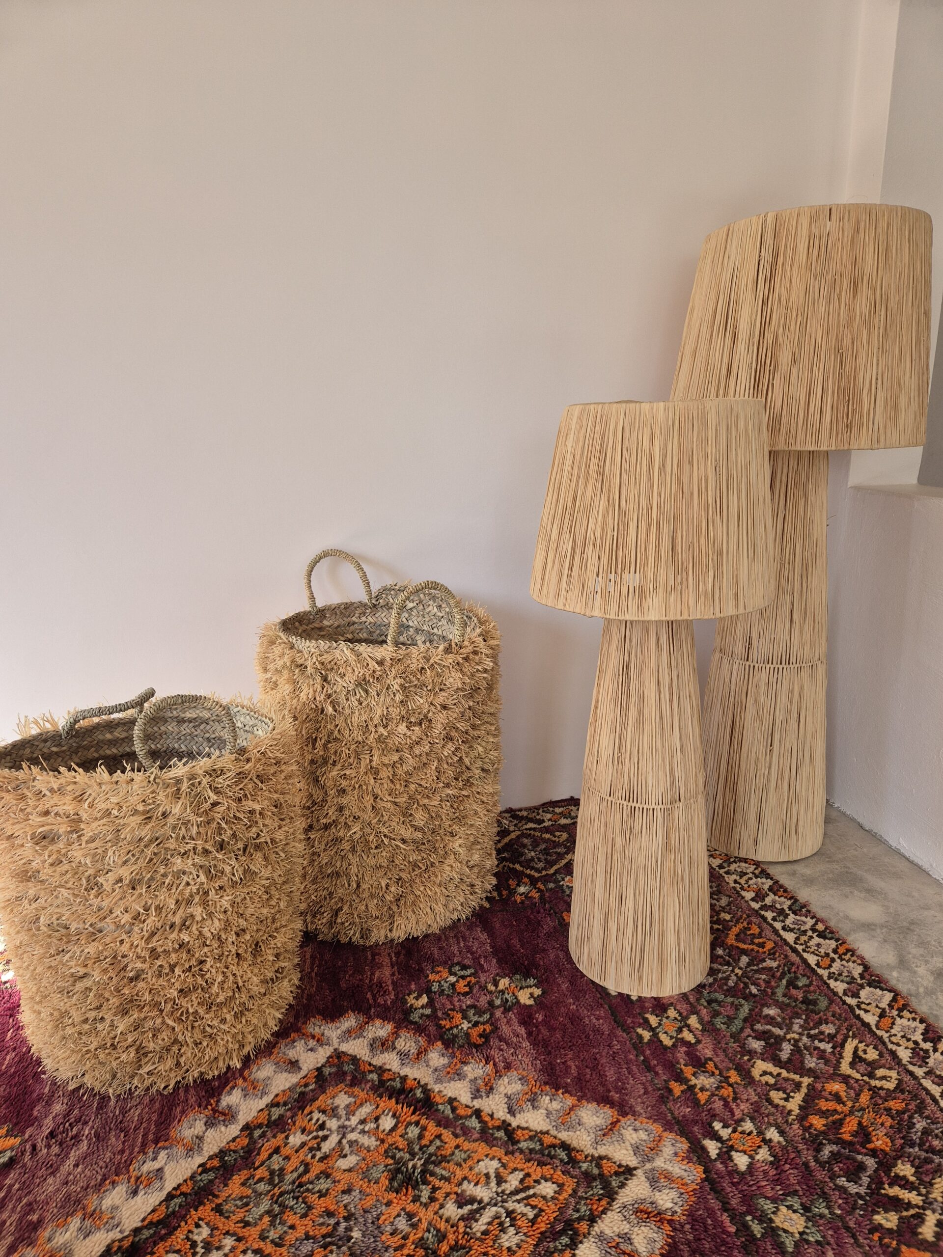 Ce grand panier, tissé avec soin à partir de feuilles de palmier et embelli de raphia naturel, est une solution de rangement aussi pratique qu’esthétique. Il est parfait pour accueillir votre linge délicat, vos plaids douillets ou encore les jouets de vos enfants, tout en apportant une touche chaleureuse et naturelle à votre intérieur.- Dimensions : petit 40 cm, grand 50 cm