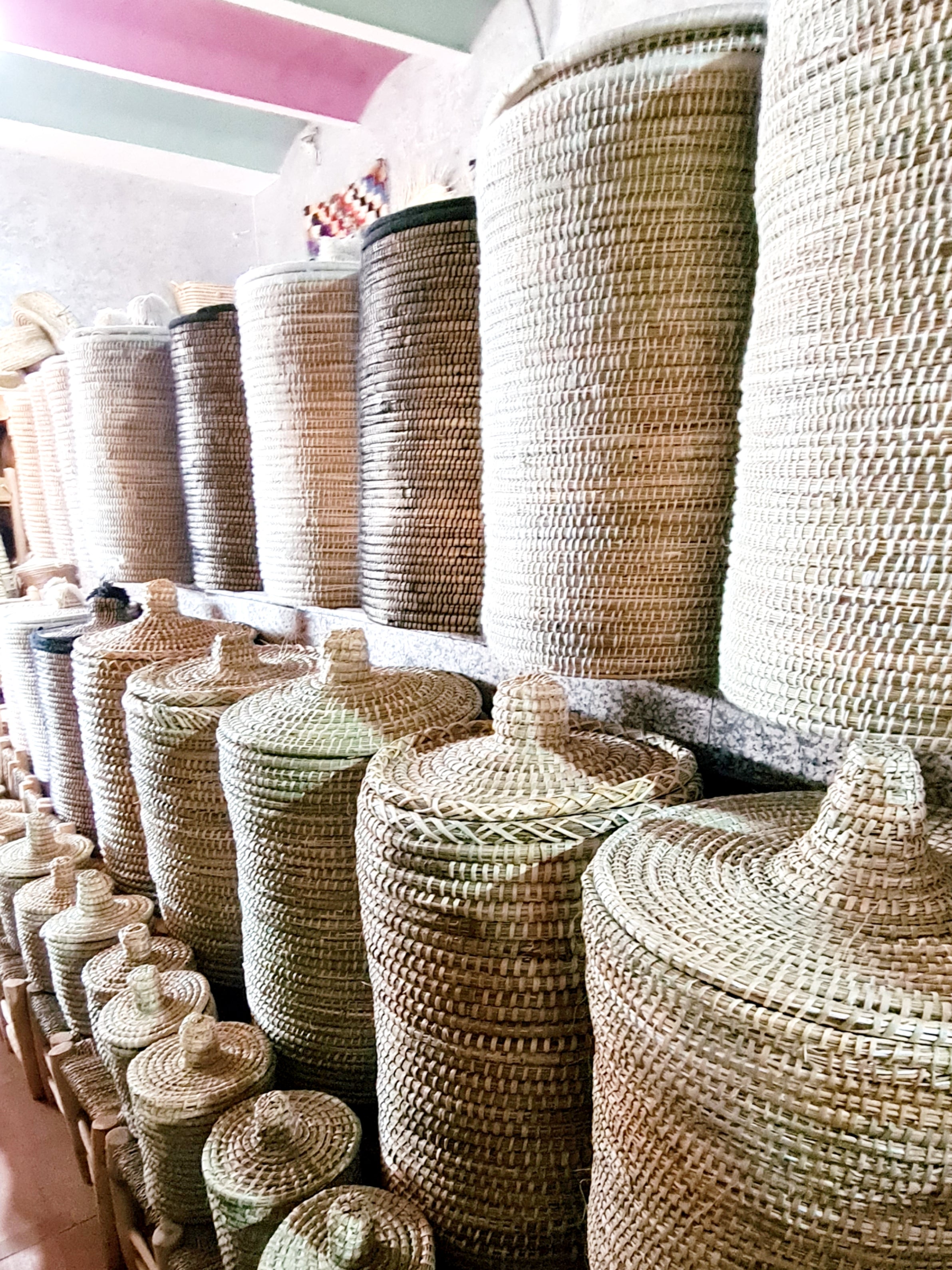 Authentique panier berbère pour ranger vos affaires. Fabriqué à la main en feuille de palmier.- Dimensions : 50 cm, 60 cm
