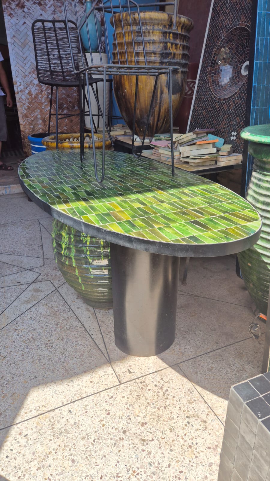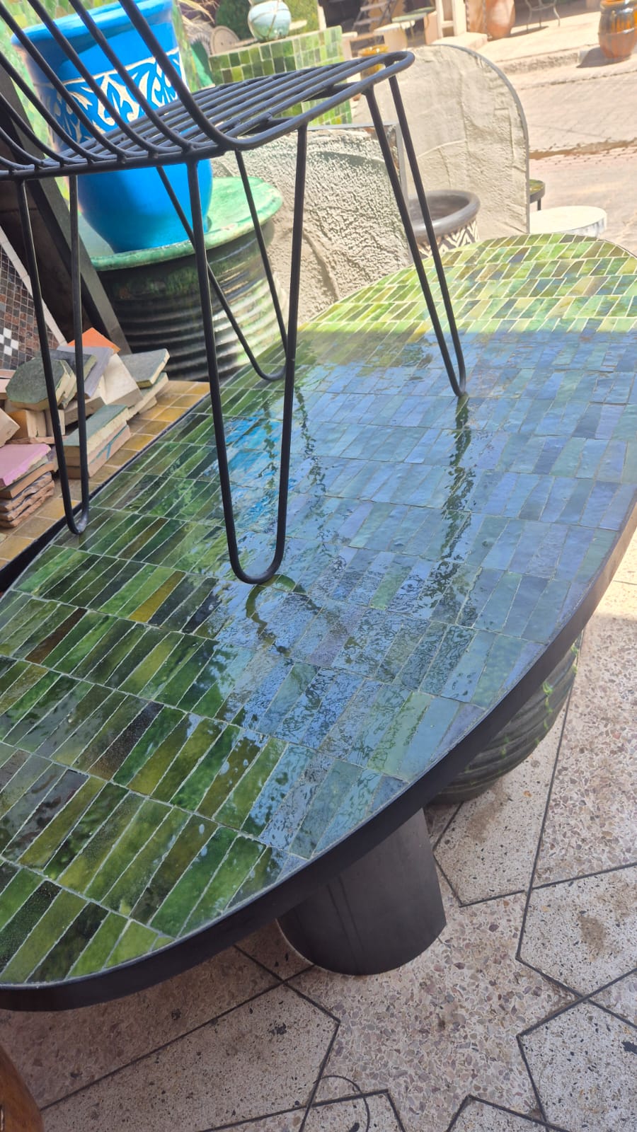 Apportez une touche d’authenticité et de raffinement à votre intérieur ou extérieur avec cette table en zellige marocain.