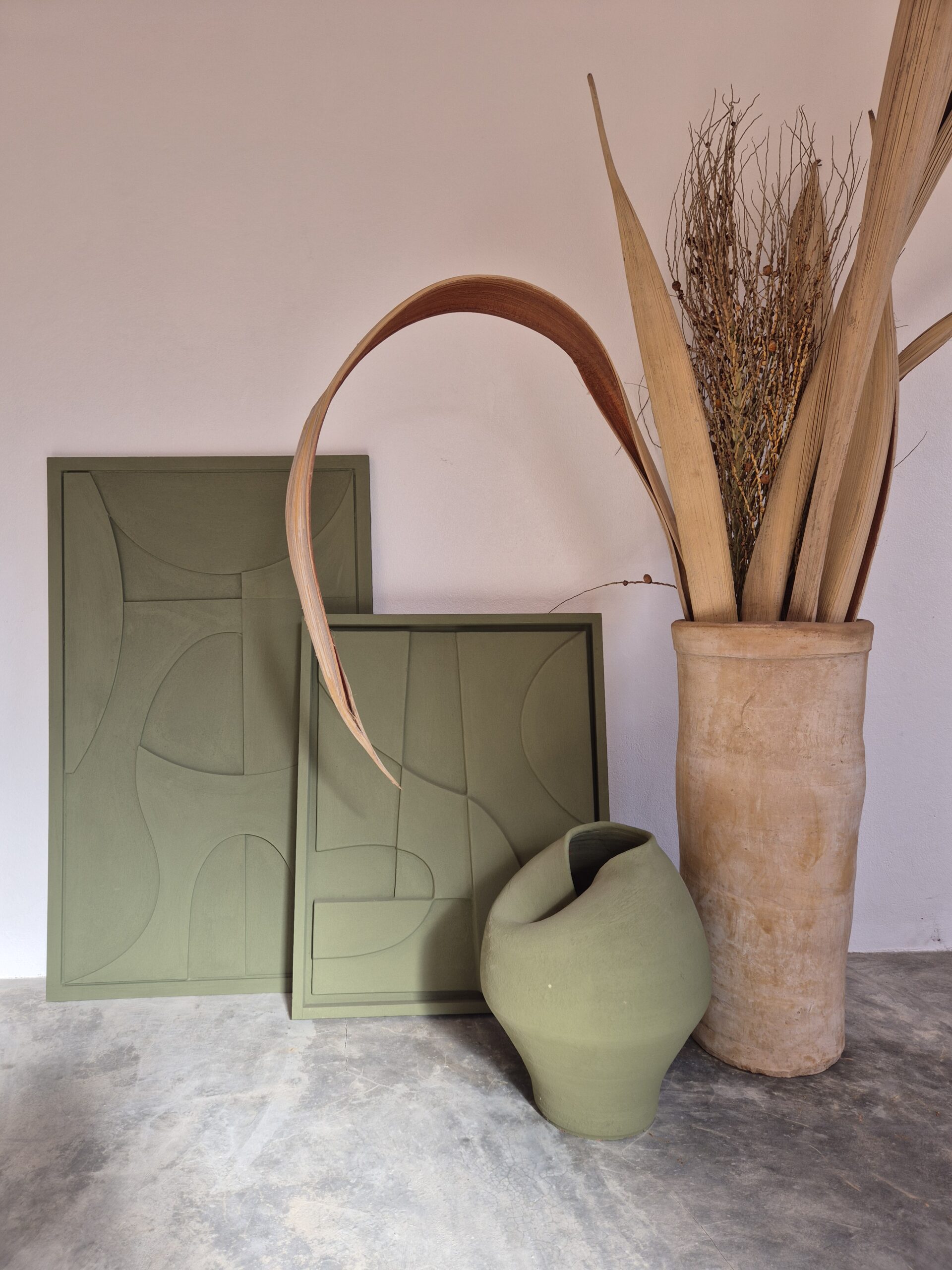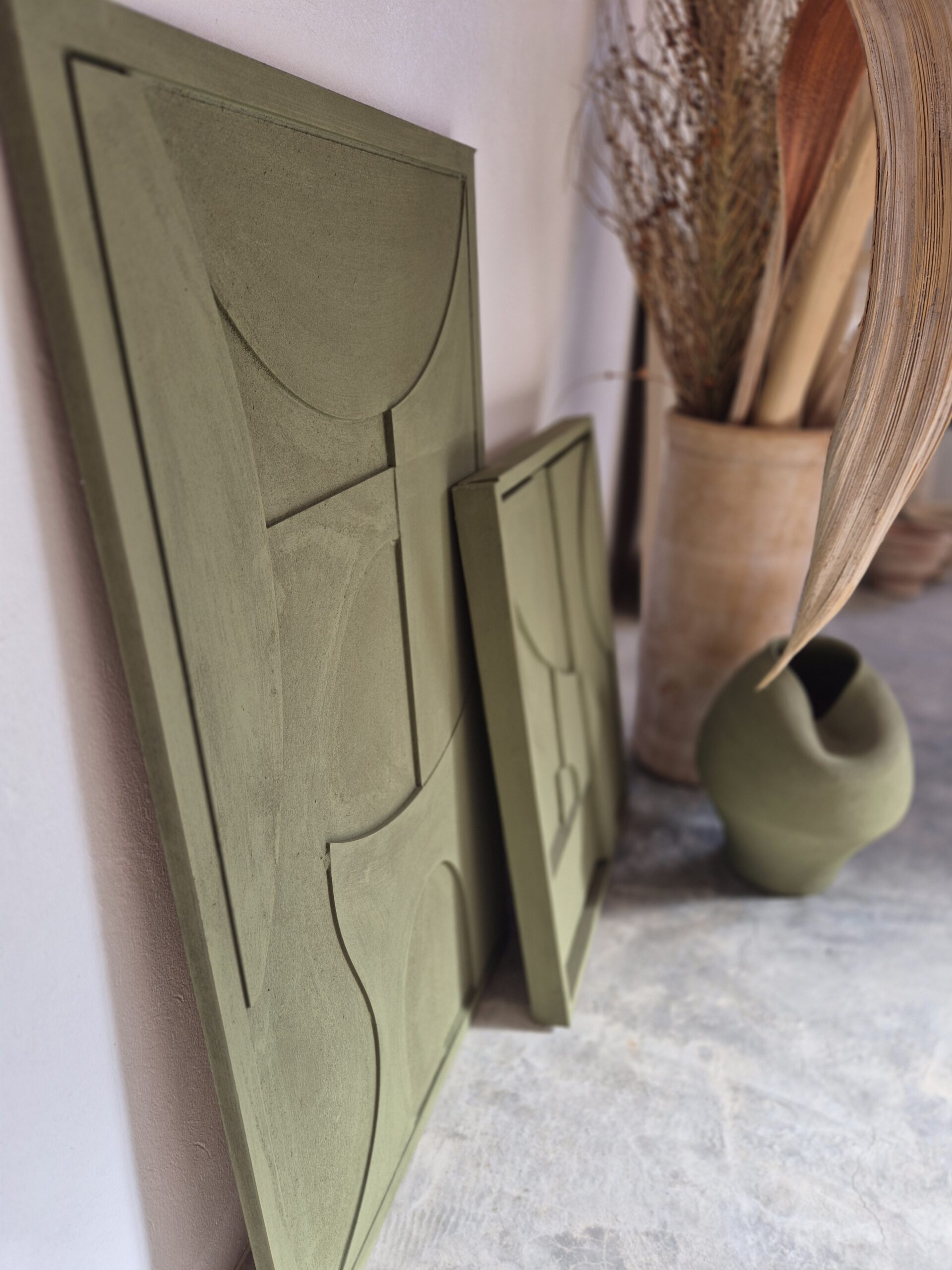 Tableau en relief kaki mat