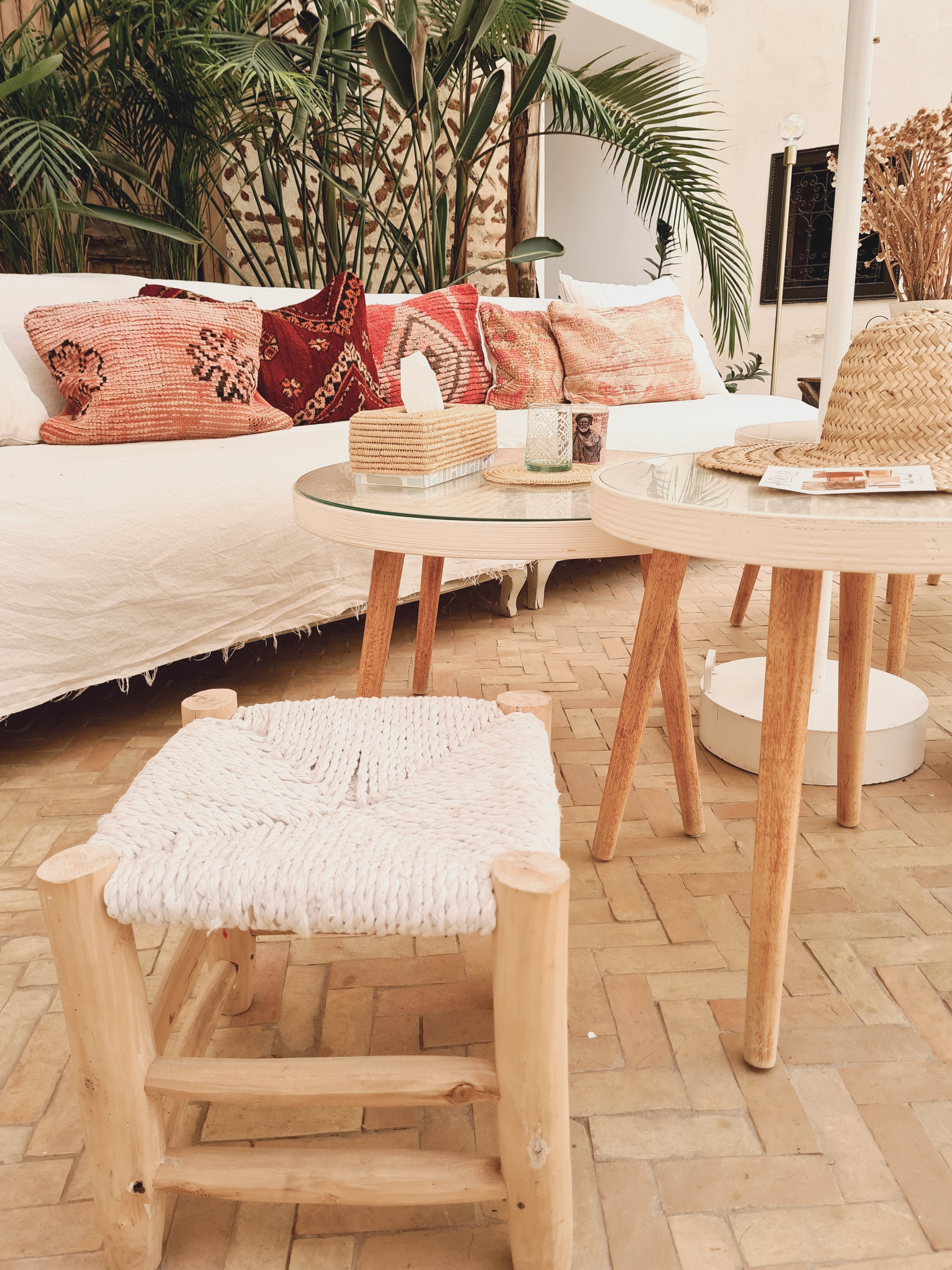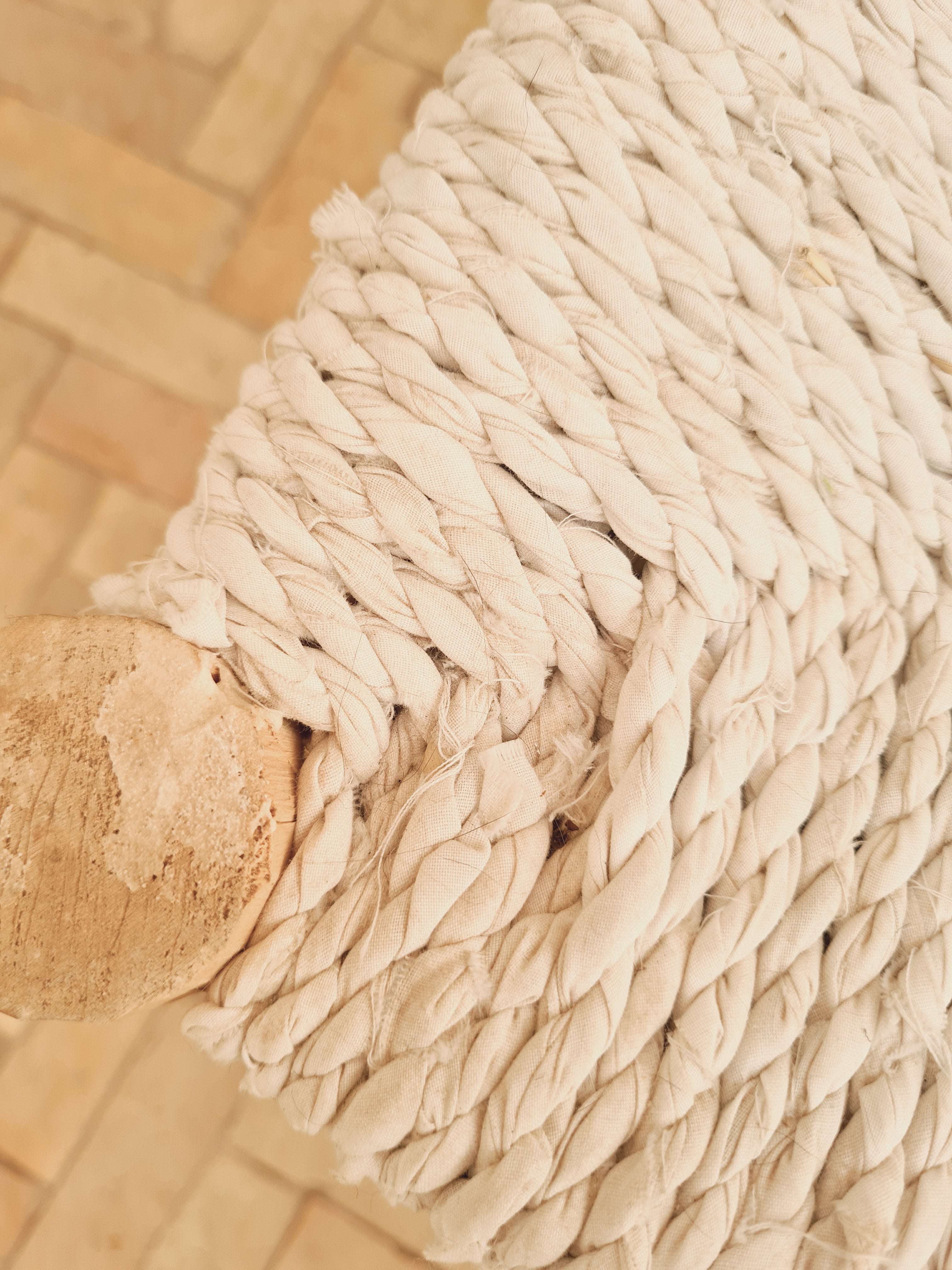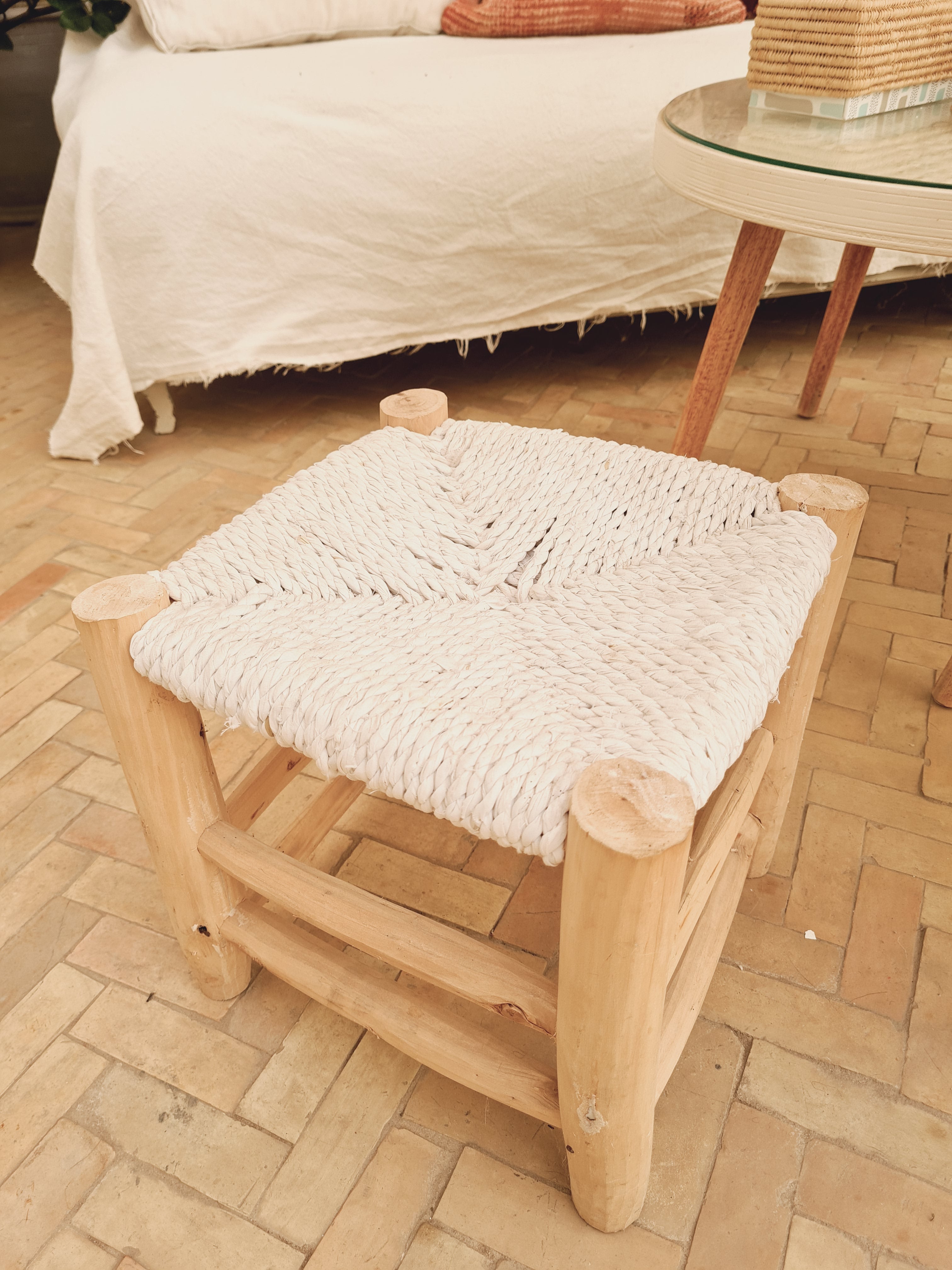 Ces tabourets marocains traditionnels sont réalisés en bois et tressage de tissu, il apportera un esprit bohème une pièce rien que par sa présence. L’assise en boucherouite est constituée de chutes de tissus en coton recyclé, que les femmes berbères vont nouer et tresser l’ensemble. Chaque tabouret est unique, avec ses couleurs et ses motifs. Siège d’appoint, bout de canapé, petite table de chevet… Ces tabourets embelliront chambre d’enfant, salon, un extérieur sous abri, ou une autre pièce de vie : Tendance bohème chic !- Dimensions