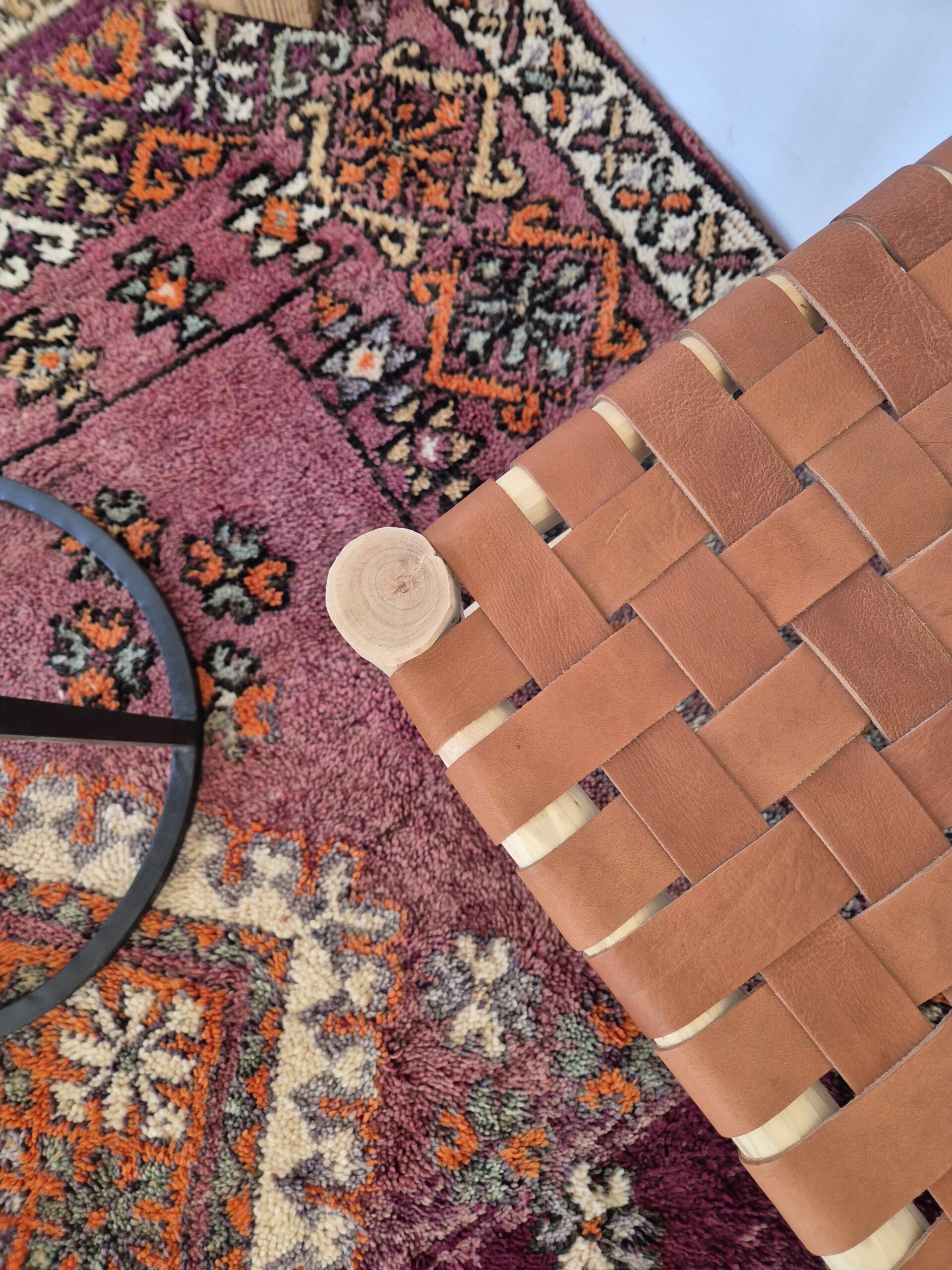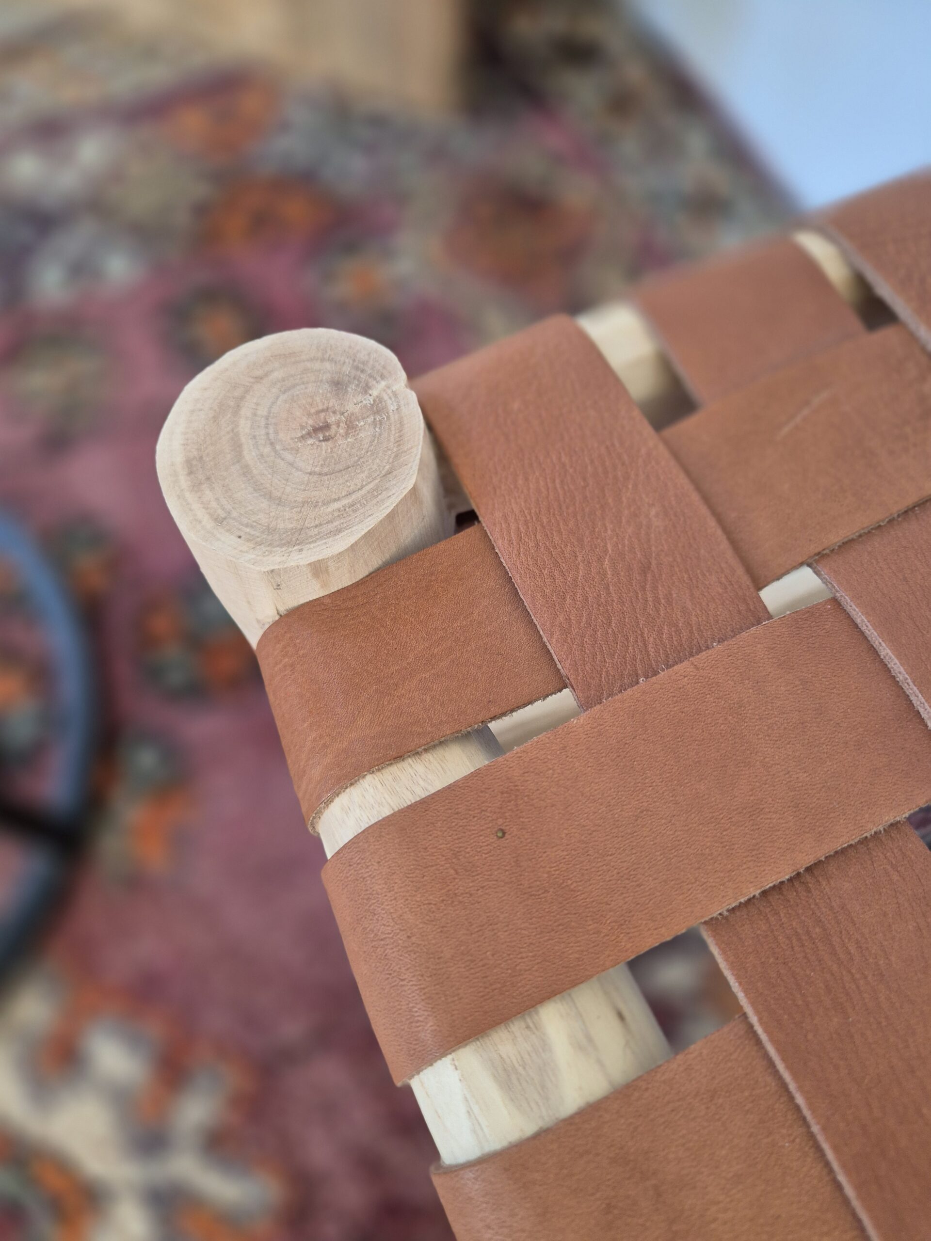 Tabouret cuir tressé