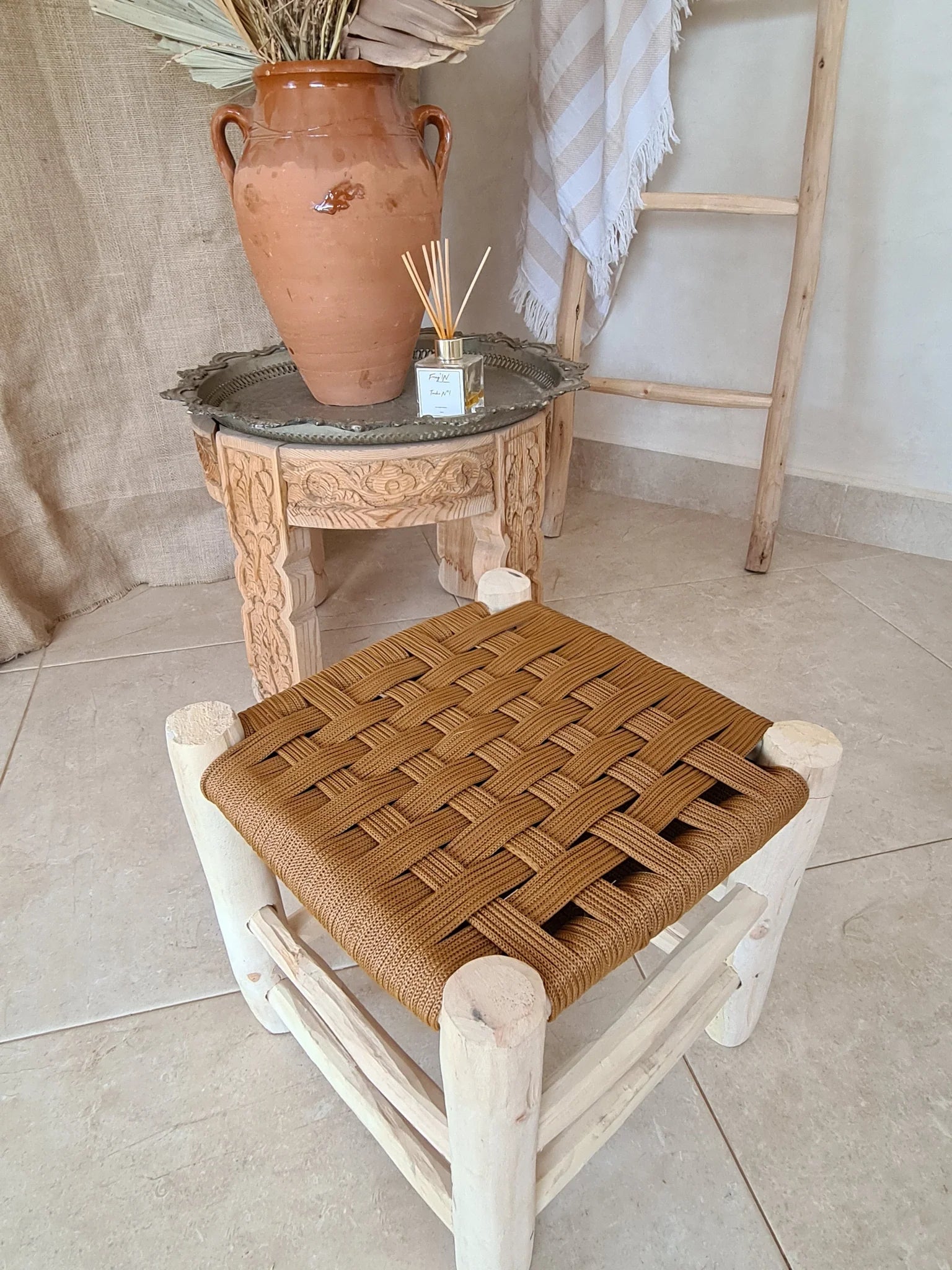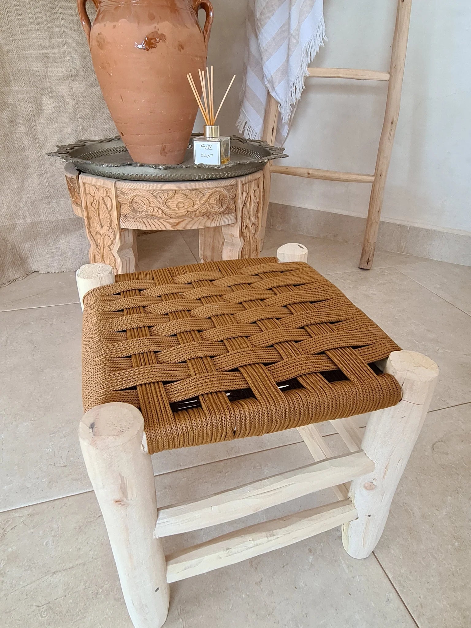 TABOURET NYLON – TRESSAGE DAMIER – COULEUR AU CHOIX